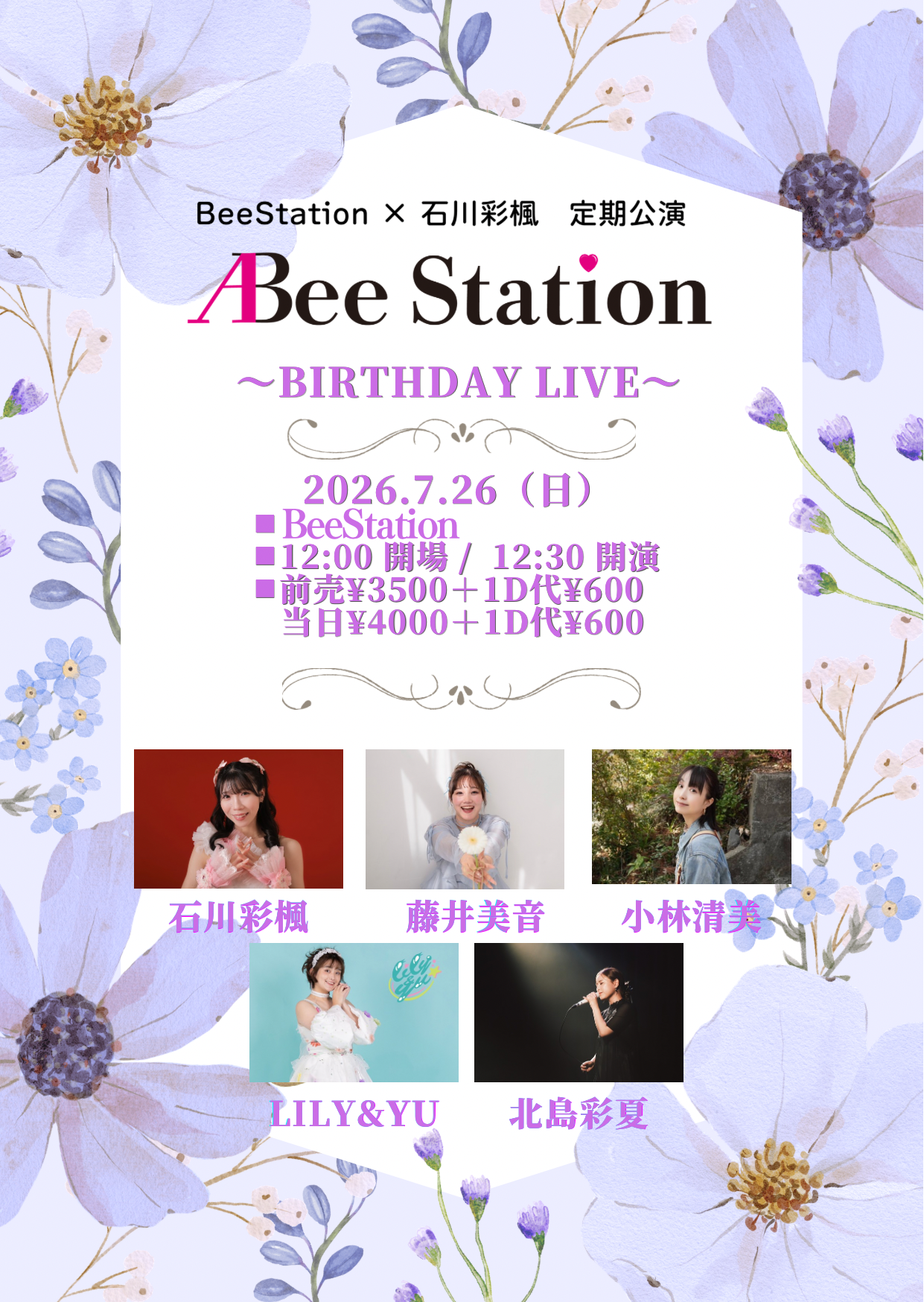 今回7月26日に【BeeStation ×石川彩楓 定期公演『ABee Station 〜BIRTDAY LIVE〜』】を開催いたします!
